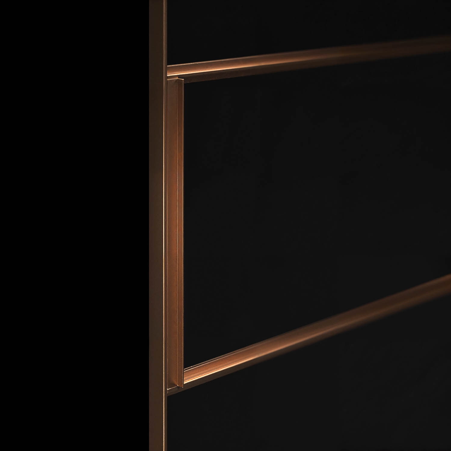 Our handles offer solutions for sliding, pivoting, and hinged doors as well as cabinets. Each handle is available in any of our finishes and can also be combined with a variety of other materials such as leather, marble, or alabaster. Get in touch to discuss options for bespoke doors or cabinets and fire-rated doors.